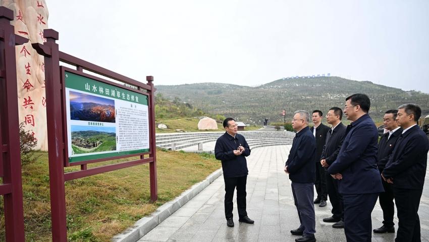 (10月9日,沈曉明來(lái)到冷水江錫礦山,實(shí)地察看礦山修復(fù)、尾礦庫(kù)治理、銻污染河道治理等工作。)